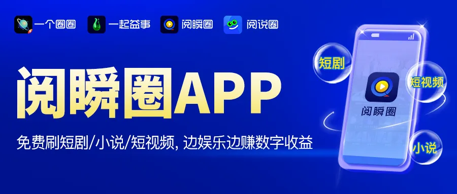 “阅瞬圈”APP,隶属湖北宏鑫康隆科技有限公司,是由旗下“一个圈圈”品牌领衔打造,推出的首款数字短剧矩阵应用。该APP坐拥海量短剧、小说、短视频资源,为用户提供了一站式多样化的娱乐选择,不仅内容丰富多样,且APP所有内容通通免费。用户参与其中,无需支付任何费用,就能免费观看短剧、读小说、刷短视频,更可通过平台独特的“看广告赚米”机制,轻松赚取自身娱乐贡献行为所带来的数字收益,真正实现娱乐赚钱两不误。
