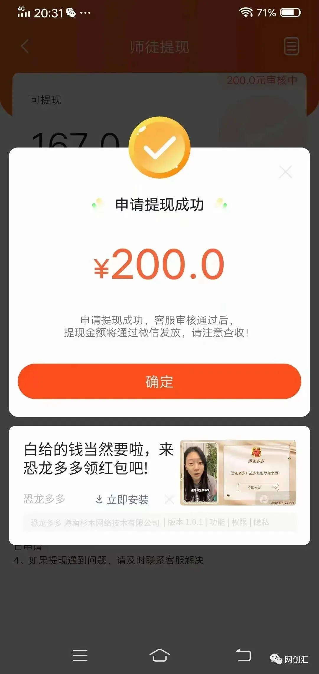 当下这种经济环境下,你们知道吗?很多人在工厂打螺丝,辛辛苦苦工作8小时,才能赚到100块钱!而通过这个APP,你可以轻松观看广告,当天就能见到钱!