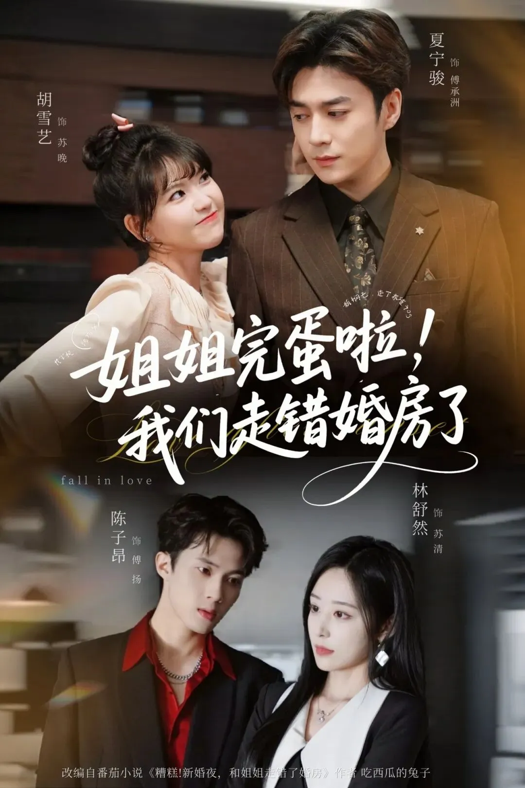 苏晚与姐姐苏清一同嫁入傅家,原定姐姐嫁家主傅承洲,苏晚嫁影帝小叔傅扬。怎料新婚夜阴差阳错,两人走错婚房,苏晚与傅承洲共度一夜,苏清则与傅扬相守。四人商议后决定顺势换嫁,殊不知这场意外错位,反倒让彼此觅得良人,成就了两对天作之合的美满眷侣。本剧改编自番茄小说《糟糕!新婚夜,和姐姐走错了婚房》,作者吃西瓜的兔子。