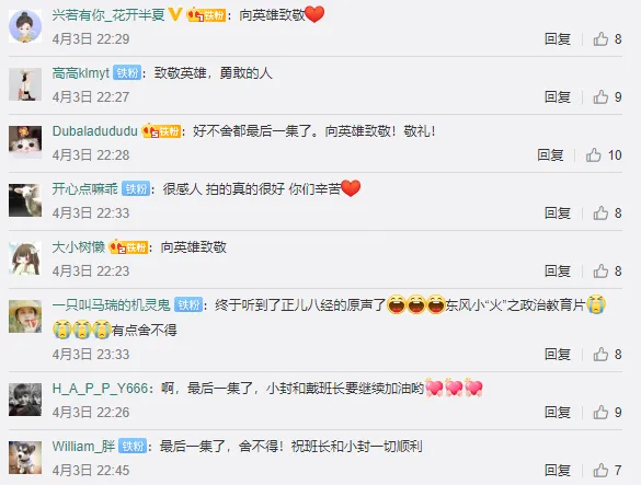 情绪的积累、人物的成长自然发展到了这个阶段,大家看的时候才不会觉得尴尬,反而是进入到了情绪中,发自内心地表达崇敬之情。