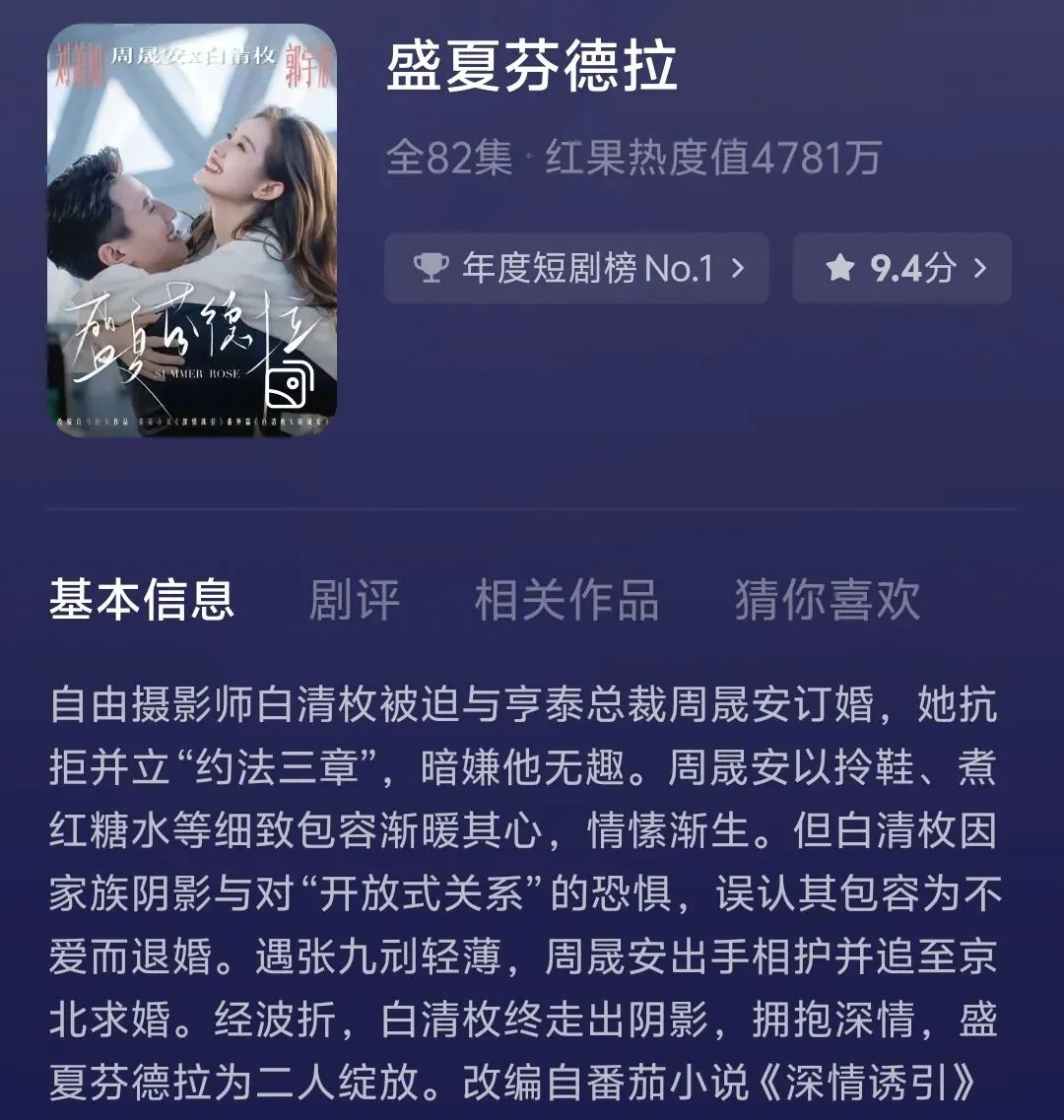 这部剧真的很特别,现在不少短剧都靠强冲突、快反转吸睛,恨不得一集一个大反转,但这部偏走细水长流的路子,反倒在众多短剧中脱颖而出,格外难得。女主是男主的秘书,朝夕相处下来,男主慢慢对她动了心,但女主很清醒、很现实,清楚两人的身份差距,没有一时冲动答应,这份清醒太戳我了,也是这部剧能出圈的关键