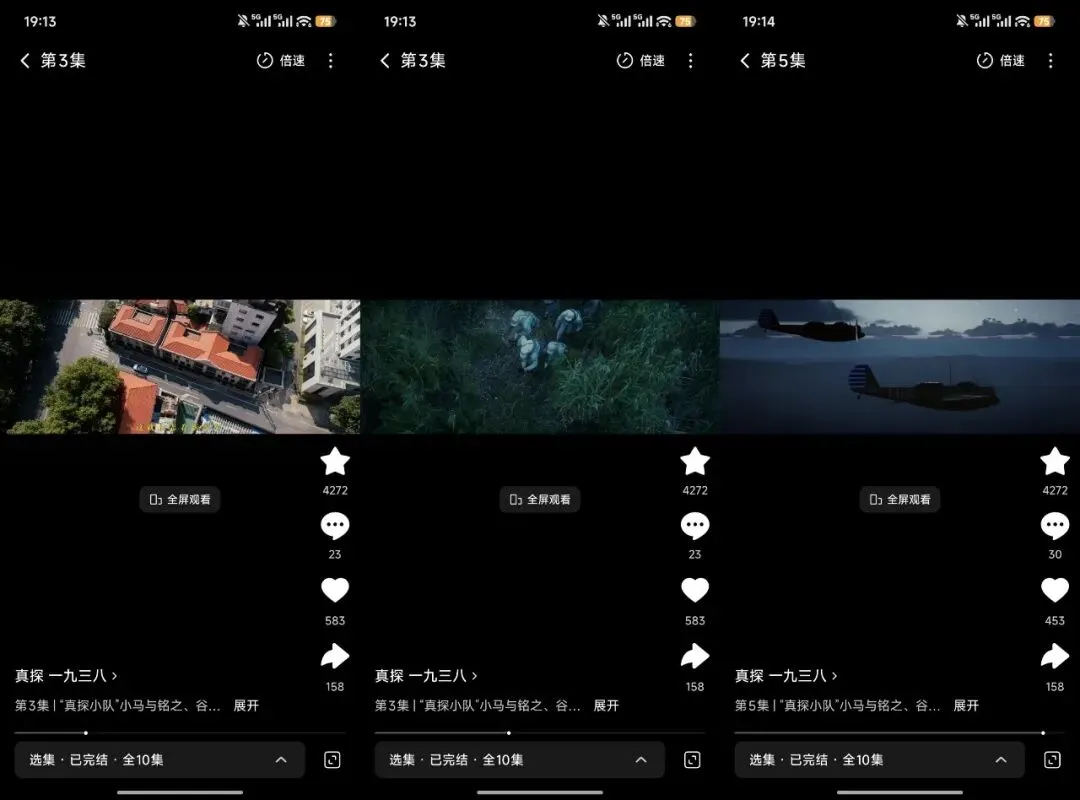 这部是横屏,讲述的是一个关于抗战的故事,“真探小队”小马与铭之、谷鸿在武汉发现一本1938年的神秘日记,开启对武汉保卫战的历史探寻,通过日记线索,剧情回溯1938年烽火岁月。最令我惊奇的是这部剧的画幅比,像在看电影。就是这剧情整体看下来吧,更像是宣传片,不像剧。