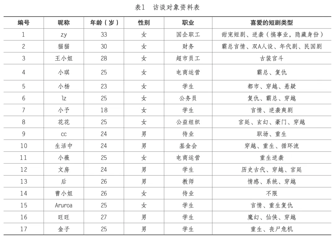 其次,微短剧的碎片化形态与青年“被切割”的时间结构高度适配。微短剧整部剧集的时长在一个半小时左右,且单集时间极短(通常1~3分钟),并具有自动播放功能,可以无缝嵌入青年日常生活的各种工作间隙。这种“弱注意力”的观看模式,使得微短剧成为一种轻盈的情感陪伴,在不增加认知负担的前提下,帮助青年填充碎片时间,缓解枯燥与焦虑情绪。例如,小琪认为微短剧已成为一种调节工作节奏、对抗职业倦怠的工具:“我有些时候还会在上班时间看短剧。一边看一边忙,这样就会让时间过得快一点,让枯燥无味的工作过得快一点”(小琪20250506)。