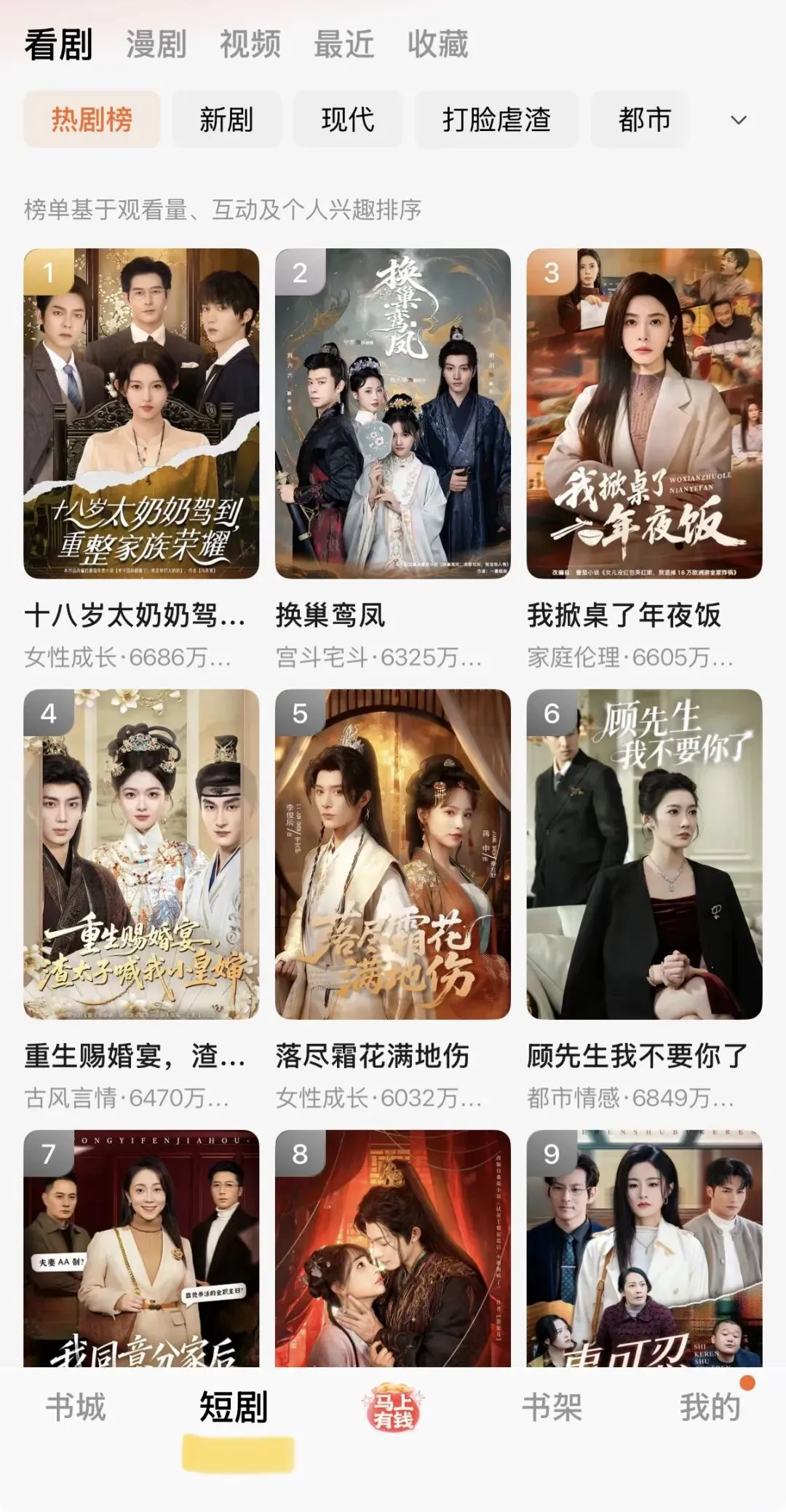姐妹们,我发现现在的短剧质量真的开挂了!过年我天天熬夜刷,根本停不下来~我在番茄小说看的,全部免费,无广!一口气能炫完一部又接着下一部,过瘾还不用花钱,这快乐谁懂啊!真的,短剧再也不是土尬代名词了,有些制作精良到像在看电影解说!必须按头安利我过年刷到的这几部,剧情、演技、质感都在线,很有水准。你们有看过好看的也可以在评论区来分享分享哈。