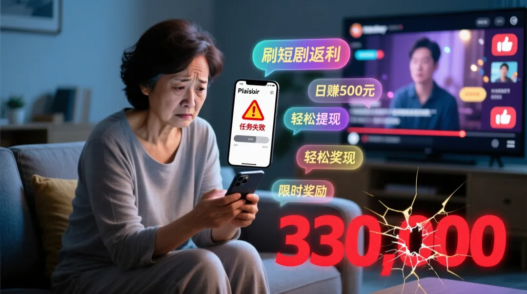 2025年12月,宁夏银川市兴庆区的段女士怎么也没想到,一条看似无害的短视频私信,竟让她在短短几天内损失33万元。事情的开端,是她在刷某短视频平台时,收到一条陌生私信:“亲,想轻松日赚500元吗?零门槛,只需截图短剧就能返现!”对方还附上一个5元红包,声称是“新人福利”。段女士抱着试试看的心态领取红包,并按指引下载了名为“Plaisir”的APP。起初,任务确实简单:截几张短剧画面、点赞评论,几分钟就能拿到10元、20元返现。她连续做了几单,钱都能秒到账。于是,信任悄然建立。但就在第三天,对方突然通知“任务升级”:需垫资3000元完成一组高佣金任务。段女士犹豫了一下,但想到前几单都顺利返款,便转账了。可完成任务后,对方却称“操作失误导致账户冻结”,必须再充值2万元“修复数据”,才能一并提现。段女士慌了,但又不甘心前期投入打水漂,于是咬牙取现2万元,按对方指示存入指定账户。接着,又是“系统异常”“风控拦截”“需缴纳保证金”……层层加码,最终她累计被骗33万元,才在亲友提醒下报警。这不是孤例。今年以来,类似“刷短剧返利”“看剧赚钱”“点赞截图返现”的新型刷单诈骗,在全国多地高发,受害者多为学生、宝妈、待业青年等寻求“灵活副业”的群体。这类诈骗并非简单“刷单返利”的翻版,而是结合了**短视频流量红利 + 社交私信信任 + 非正规APP操控 + 线下取现洗钱**的复合型陷阱。其运作逻辑可分为三阶段:骗子长期潜伏于抖音、快手、小红书等平台,通过批量注册账号,向发布“求兼职”“想找副业”内容的用户发送私信。话术极具诱惑力:“手机点点就能日入300”“宝妈在家轻松赚钱”“学生党零成本副业”。更狡猾的是,他们往往先发小额红包(5–20元),制造“真实福利”假象,打破心理防线。数据显示,**超60%的受害者因“领了红包不好意思拒绝后续任务”而继续操作**。诈骗团伙深知“信任需要培养”。他们设计“三单返现”机制:前1–3单任务极简(点赞、截图、关注),返现秒到,金额虽小但真实到账。这种“正反馈”会激活大脑的奖赏回路,让人产生“这真的能赚钱”的错觉。心理学上,这叫**沉没成本陷阱**——一旦投入时间或金钱,人会倾向于继续投入,以证明自己没做错。当受害者信任建立后,骗子立即“任务升级”:要求垫资数百至数千元。一旦转账,便以“操作错误”“系统卡单”“账户风控”等话术拒绝返款,并要求继续充值“解冻”。而最危险的一步,是**诱导受害人去银行取现金,通过同城跑腿、快递寄送、扫码支付等方式完成线下转账**。此举目的明确:**规避银行反诈系统监控,切断资金流向追踪链**。一旦现金出手,追回几乎不可能。“Plaisir”这类APP,根本不在苹果App Store或华为应用市场,只能通过陌生人发的链接下载。它们往往伪装成“娱乐返利”“短剧互动”平台,实则为诈骗操控终端。- 受害者画像高度集中:宝妈、学生、低收入群体对“副业增收”需求迫切,警惕性相对较低;