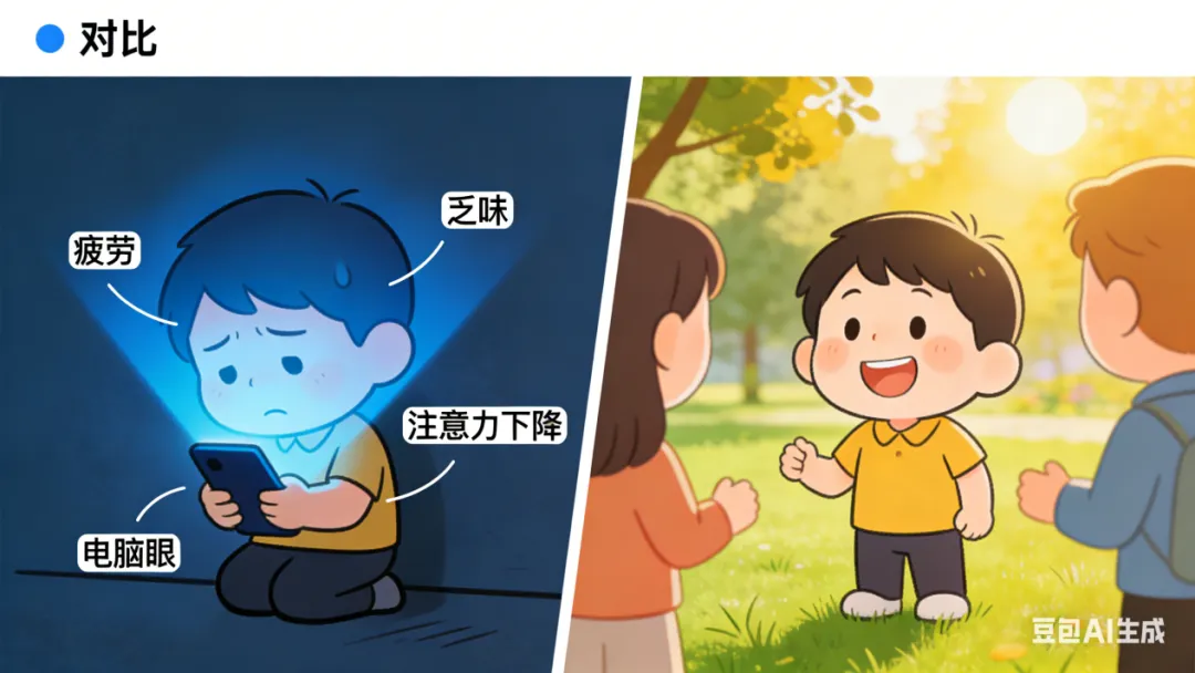 注意力碎片化:习惯了以“秒”为单位的强刺激后,你可能会发现自己越来越难专注地阅读长文、听完一堂课。这被称为 “注意力经济”下的认知损耗。
