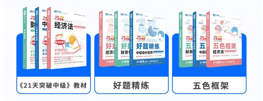 1、对应科目的《21天突破中级》(一科=3本=教材+好题精练+框架)